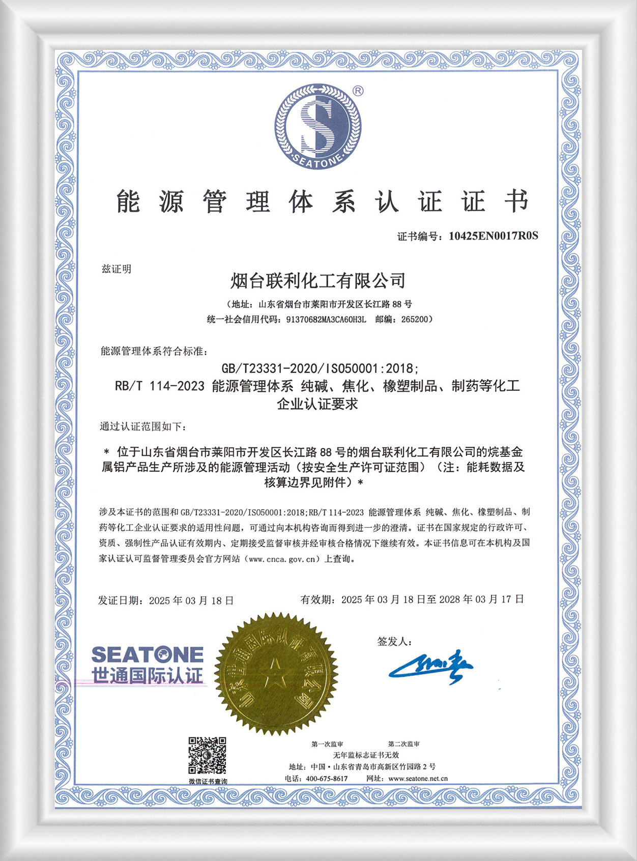 能源管理體系認(rèn)證證書